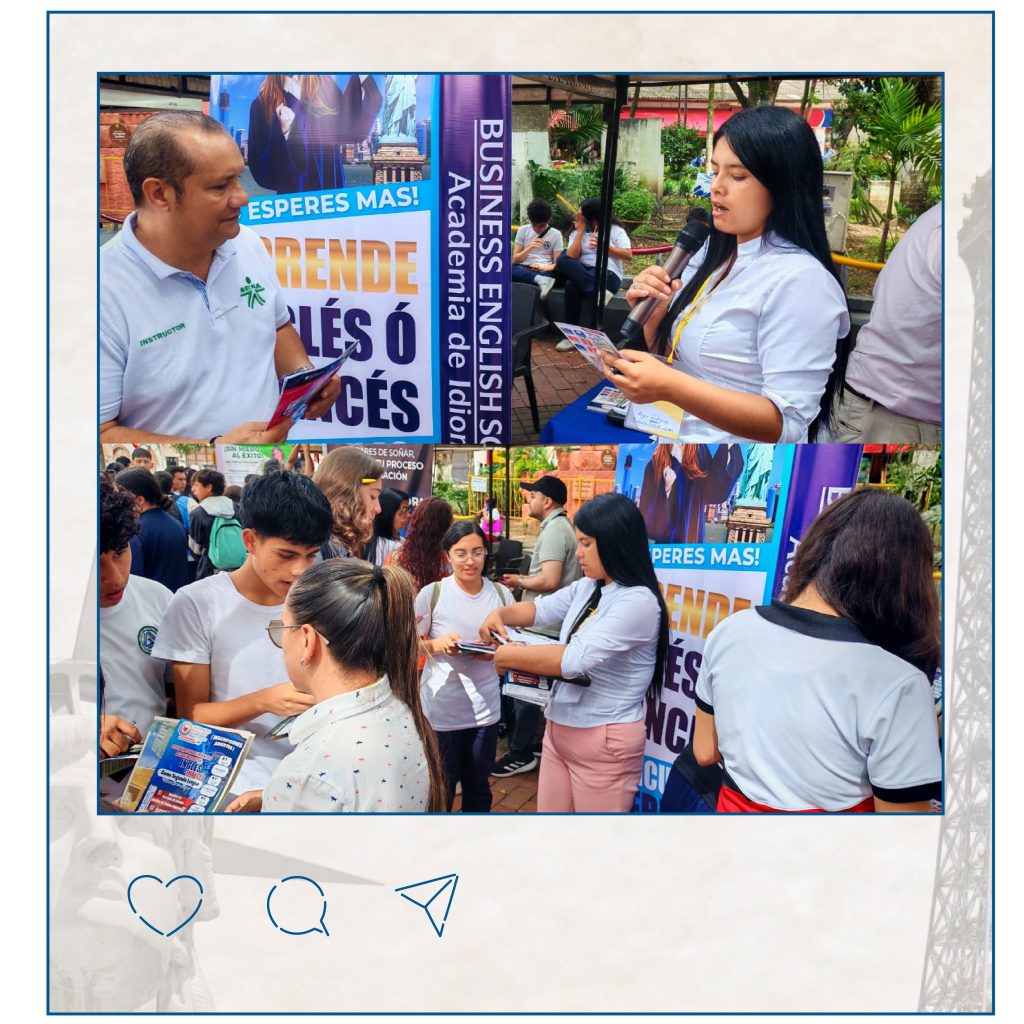 Durante la jornada, nuestro equipo compartió con la comunidad la oferta de programas que ofrece la academia, diseñados para fortalecer las competencias comunicativas y abrir nuevas oportunidades en el ámbito académico y laboral.