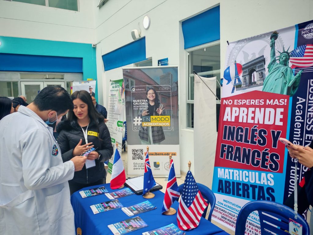 Durante la feria, nuestro equipo presentó los programas de formación que ofrece la academia, resaltando la importancia de adquirir competencias bilingües como una herramienta fundamental para el crecimiento académico, profesional y personal de los jóvenes.